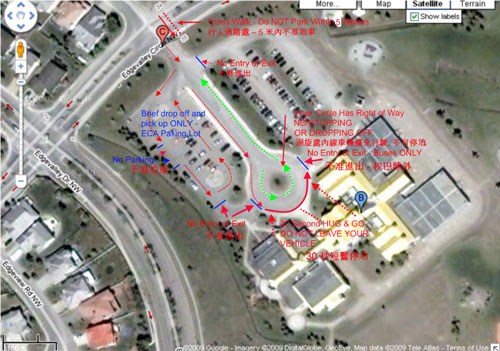 If you drop off in this area, please ensure that you dropping off at a sidewalk or using the Patrolled crosswalk to cross the road.